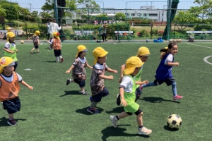 プチの2歳児と合同で3歳児からはクラス毎に30分づつ専門のコーチの指導を受けます。